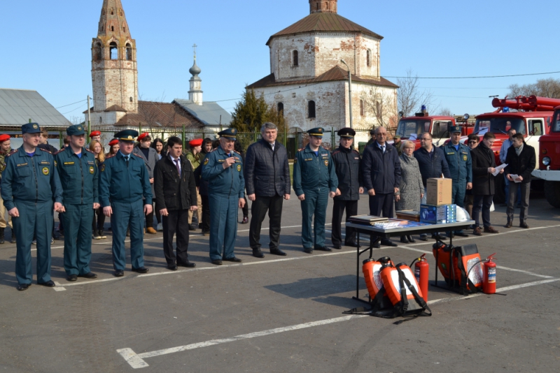 Перед гостями выступили глава администрации Суздальского района Алексей Петрович Сараев, заместитель начальника Главного управления МЧС России по Владимирской области (по ГПС) Павел Александрович Литов, председатель Совета Владимирского областного отделения Всероссийского добровольного пожарного общества Владимир Николаевич Чернов.