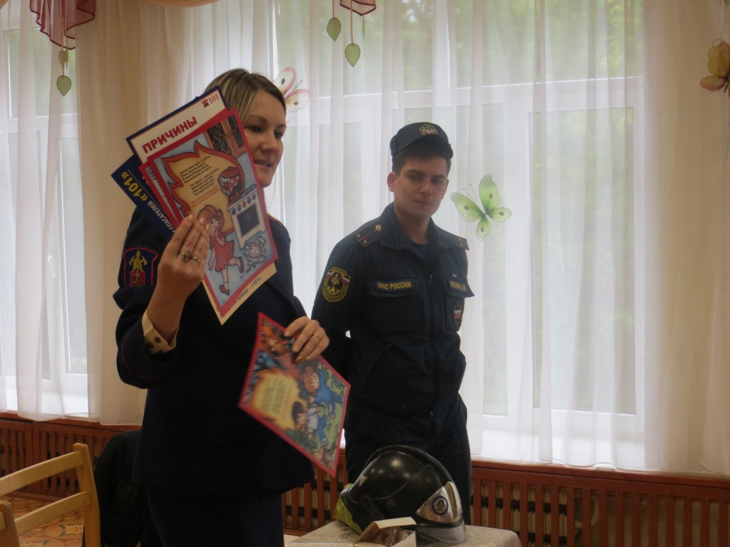 С детьми среднего и старшего дошкольного возраста были проведены обучающие занятия по пожарной безопасности. Для формирования позитивного впечатления у детей о правилах пожарной безопасности гости постарались максимально разнообразить учебный материал, используя игровые приемы, загадки и красочные плакаты. Инспектор МЧС рассказал детям о правилах пожарной безопасности дома и на улице. Так же, рассказал о нелегкой работе пожарного. Помощник председателя ВДПО провела с детьми увлекательную викторину «Огонь – друг, огонь – враг!».