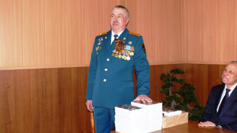 Одно из них – презентация книги. Открывая мероприятие, начальник пожарно-спасательного гарнизона Кольчугинского района Михаил Юрьевич Краев отметил, что сегодняшнее «знаменательное и волнительное» событие проходит в канун профессионального праздника пожарных, и в год, объявленный министром МЧС России Годом пожарной охраны.