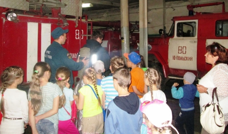 В рамках мероприятий Года пожарной охраны сотрудники Юрьев-Польского пожарно-спасательного гарнизона всё чаще открывают двери своей пожарной части для всех желающих. В разгар летних каникул в гости к огнеборцам приехали дети из школьного лагеря Опольевской средней общеобразовательной школы. Встретил ребят пожарный 4-го караула Сергей Евгеньевич Шкалябин. Огнеборец познакомил детей с тонкостями пожарного дела, а также напомнил правила пожарной безопасности и правила поведения на воде. Предупредил мальчишек и девчонок о том, что на воде нужно вести себя максимально осторожно, всегда быть под присмотром взрослых.