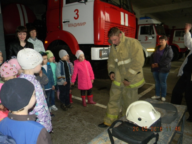 Ну а в заключение мероприятия для детей провели экскурсию по пожарно-спасательной части. Где подробно рассказали о новых пожарных машинах и их пожарно-техническом оснащении. Пожарные продемонстрировали нормативы надевания боевой одежды, рассказали о боевых буднях и пожелали ребятам удачи в творчестве. Ведь не зря большое количество работ посвящено именно им – огнеборцам!