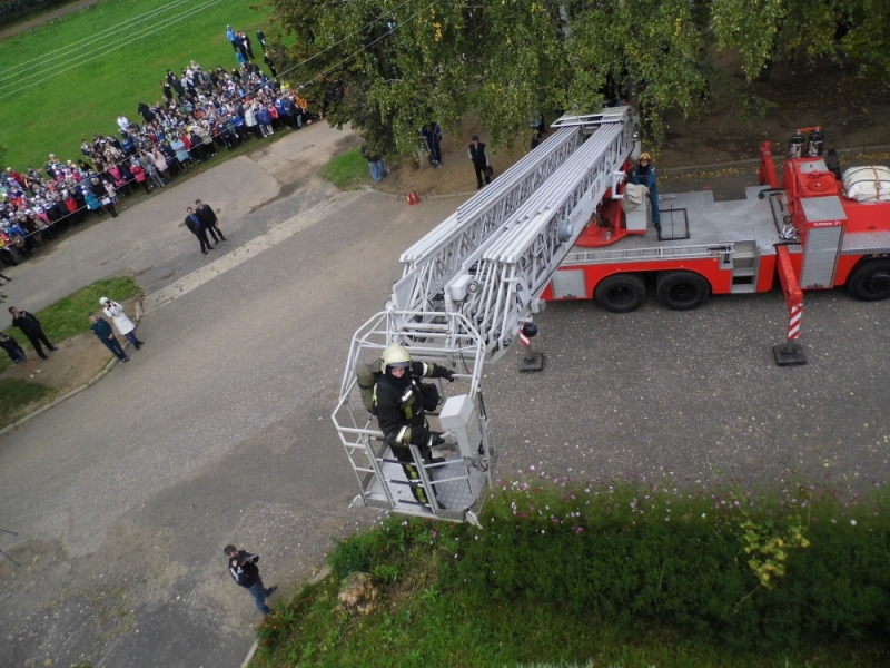 Далее в школе №2 была проведена учебная эвакуация. В действиях учителей и поведении детей чётко прослеживалось знание правил поведения при возникновении пожара. А на улице все эвакуированные наблюдали за работой пожарных 1-го ОФПС по спасению человека с помощью автолестницы.