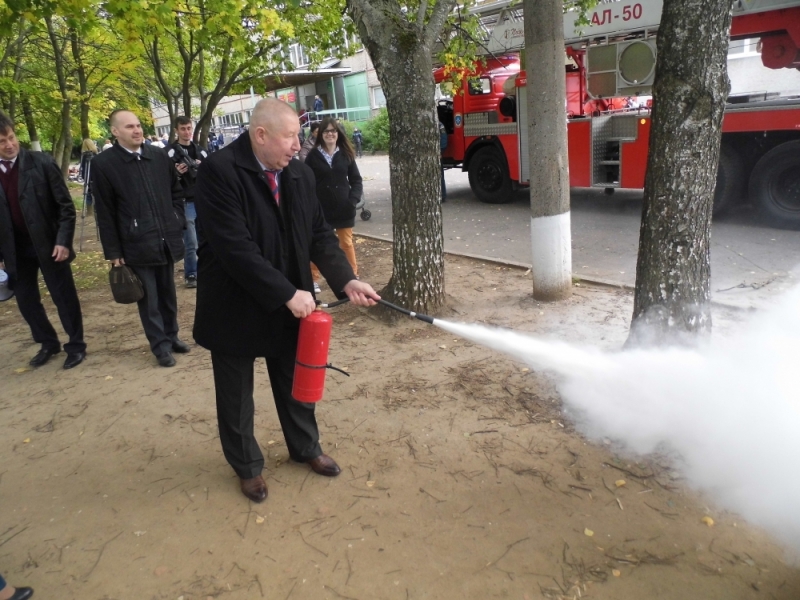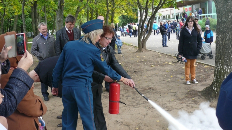 Затем Ольга Томеева провела инструктаж по пользованию порошковым огнетушителем. Каждый из ответственных за пожарную безопасность в своих образовательных учреждениях мог отработать алгоритм пользования порошковым огнетушителем.