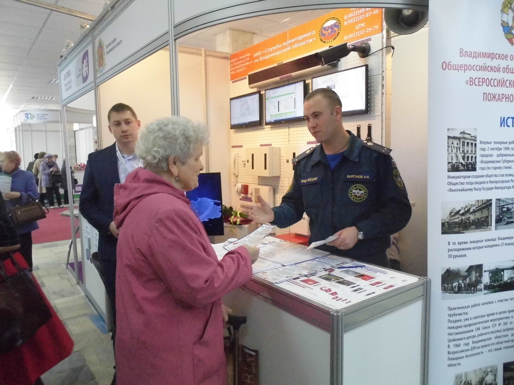 В рамках данного мероприятия была представлена секция Главного управления МЧС России по Владимирской области, куда вошли представители МЧС, ВДПО и Российского союза спасателей, каждый из которых представлял свое направление деятельности. Люди зрелого возраста, люди с ограниченными возможностями входят в так называемую «группу социального риска», то есть в группу граждан, которые могут оказаться в наиболее уязвимом положении в случае возникновения пожара. Сотрудники 1-го отряда ФПС по Владимирской области и отделения НД и ПР по Ленинскому району города Владимир напомнили участникам форума правила безопасного пользования бытовыми электрическими приборами, газовым оборудованием и печным отоплением. Рассказали, по каким можно номерам вызвать помощь в случае возникновения пожара, либо другого чрезвычайного происшествия и описали основной алгоритм действий в случае беды. Всем инструктируемым были вручены тематические памятки. Так же людям, входящим в так называемую «группу риска» предлагали заполнить заявку на бесплатную установку автоматических дымовых пожарных извещателей, которые оповестят жильцов о возникновения пожара в доме и помогут сохранить свою жизнь и здоровье в целости и сохранности.