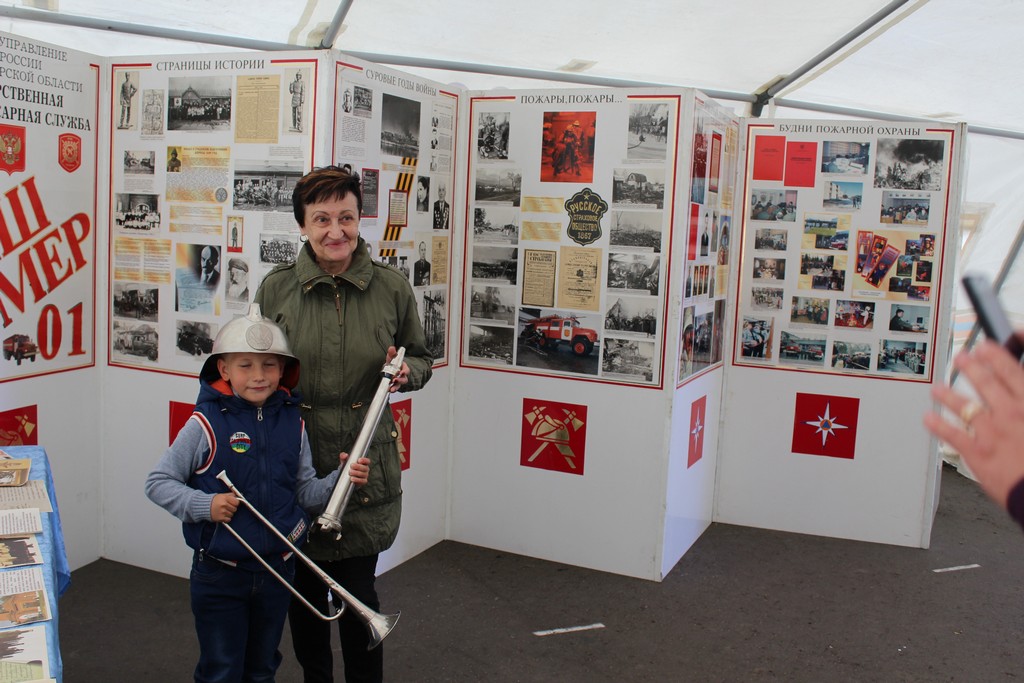 В специальной палатке работала передвижная выставка «История спасательной службы». Любителям истории рассказали о том, как и когда образовалась первая пожарная дружина, что использовали для тушения пожарные того времени. Работники Центра противопожарной пропаганды и общественных связей не оставили без внимания ни одного посетителя выставки. Люди надолго задерживались около представленных стендов, с большим интересом всматриваясь в мгновения прошлого. Детей и взрослых в равной мере заинтересовал макет пожарного депо, всем было интересно, как же выглядело здание пожарной охраны ещё в царские времена, а так же старинная каска пожарного, почти каждый примерил её.