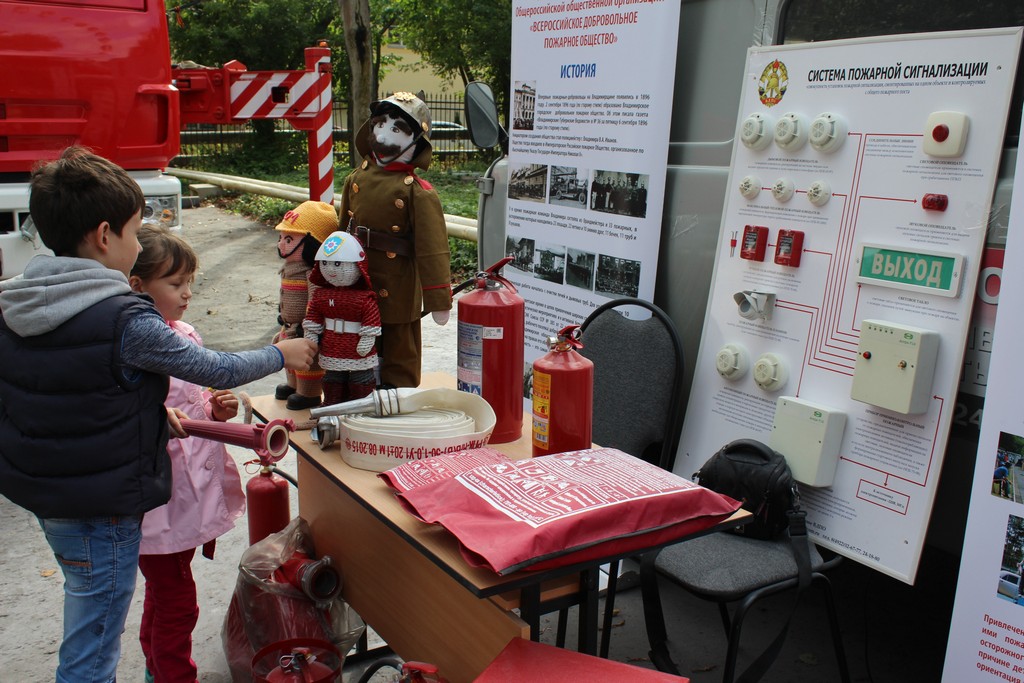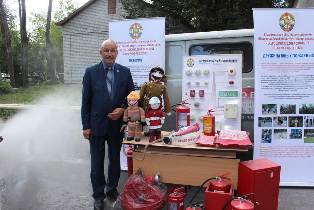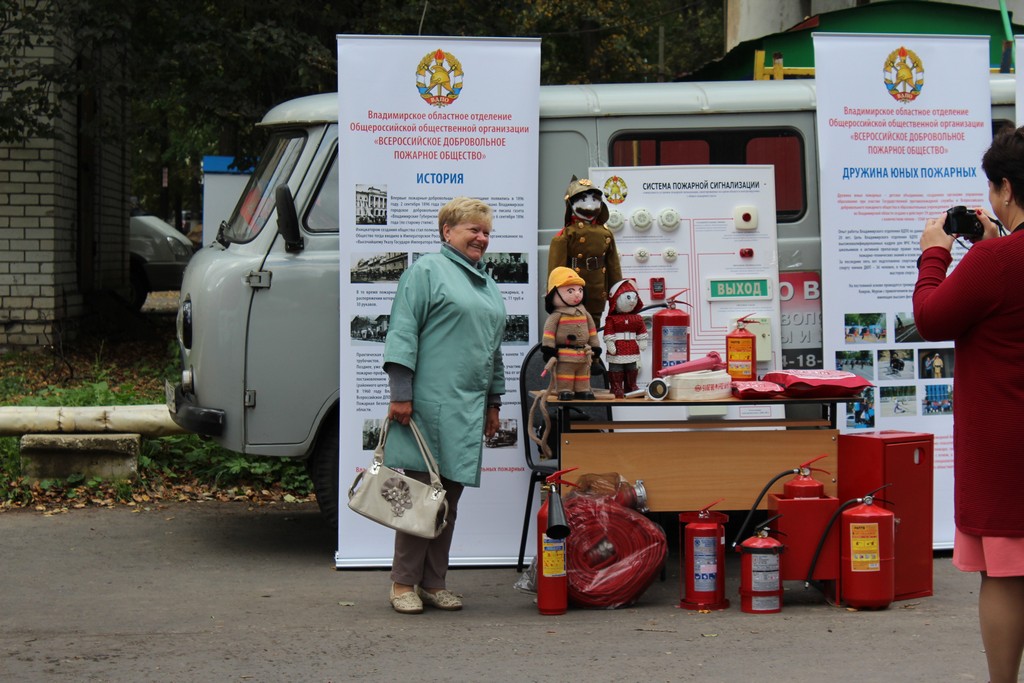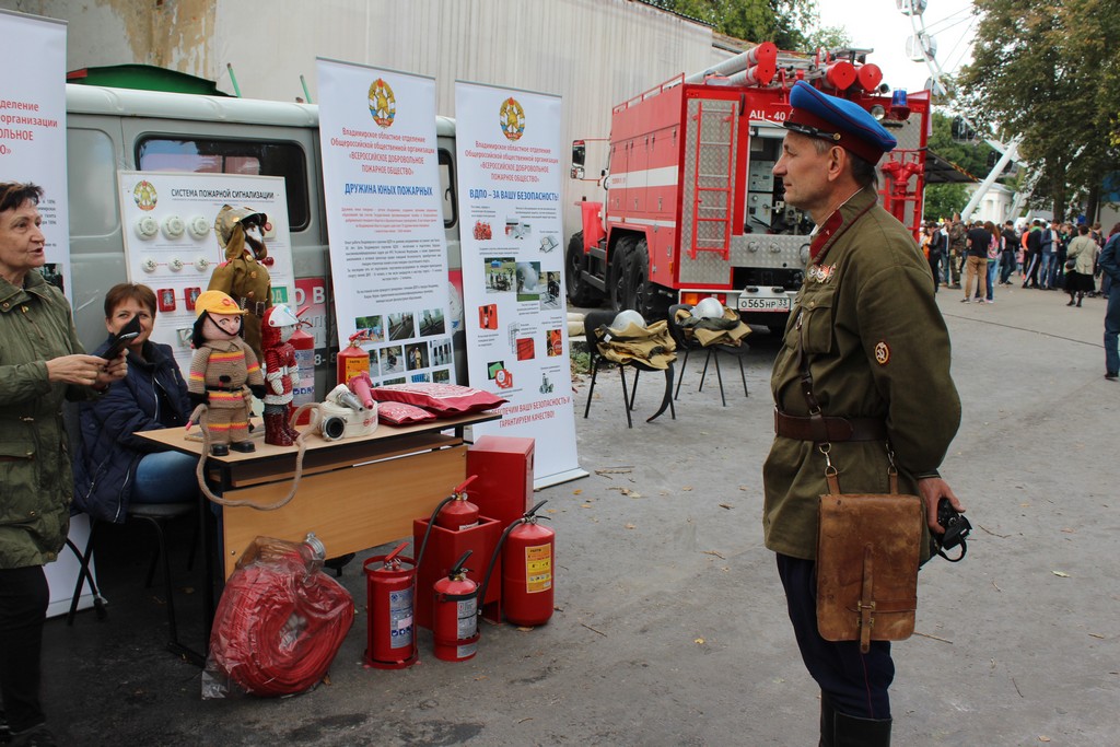 Далее располагался стенд Владимирского областного отделения ВДПО, где желающие могли использовать огнетушитель по его прямому назначению, потушив условный очаг пожара. Здесь же можно было ознакомиться с историей добровольного пожарного общества, узнать больше о добровольцах, разновидностях огнетушителей и о многом другом.