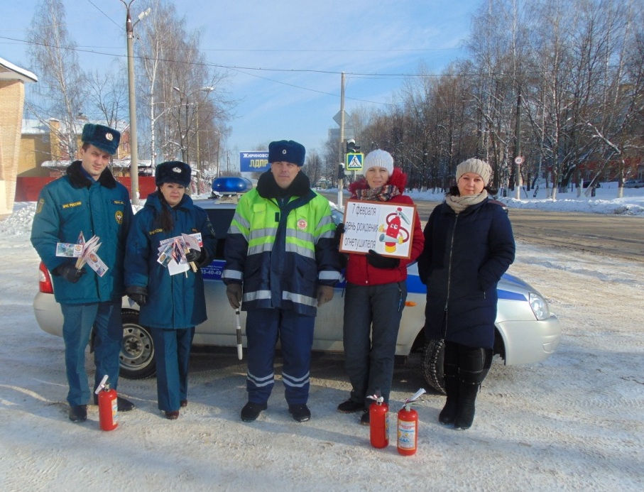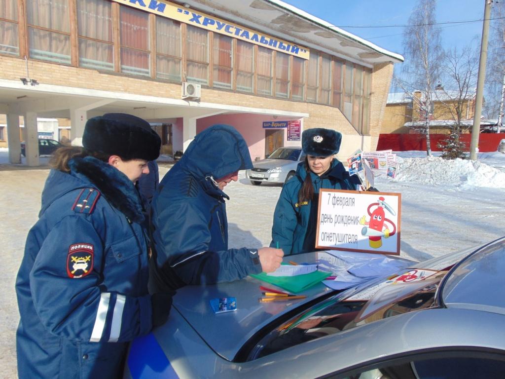7 февраля в День рождения огнетушителя сотрудники МЧС совместно с Гусь-Хрустальным районным отделением ВДПО сотрудниками ГИБДД организовали противопожарную акцию, которая называется «А у вас есть огнетушитель?».