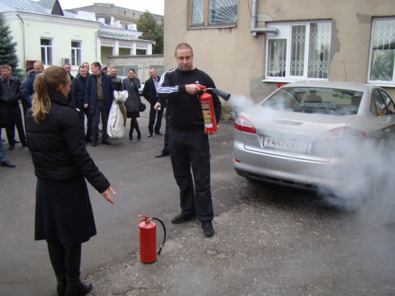 Началось профилактическое мероприятие с тренировки по отработке действий на случай возникновения пожара. Быстро и организованно сотрудники МВД покинули здание. На улице для них было проведено информационно-практическое занятие.