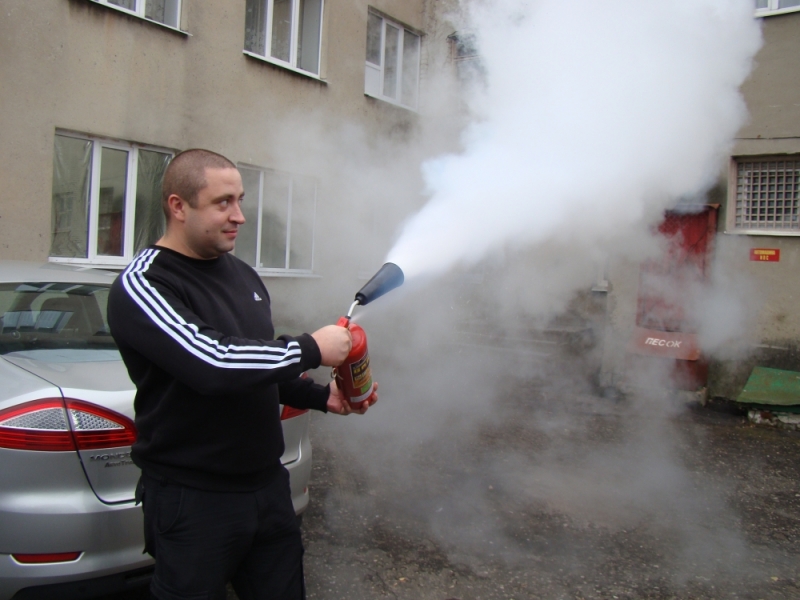 А по завершении информационной части сотрудники полиции опробовали в действии работу огнетушителя.