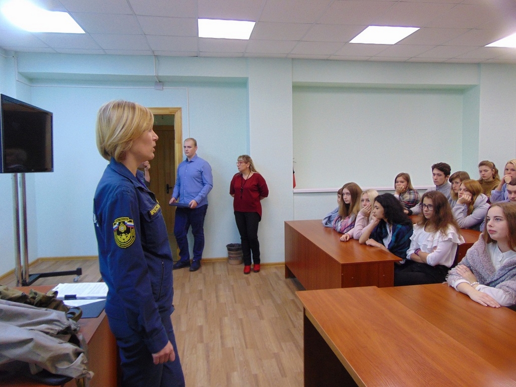 В рамках месячника Гражданской обороны 3 октября работники 5 отряда федеральной противопожарной службы и добровольного пожарного общества встретились со студентами 1 и 2 курсов Гусевского стекольного колледжа города Гусь-Хрустального.