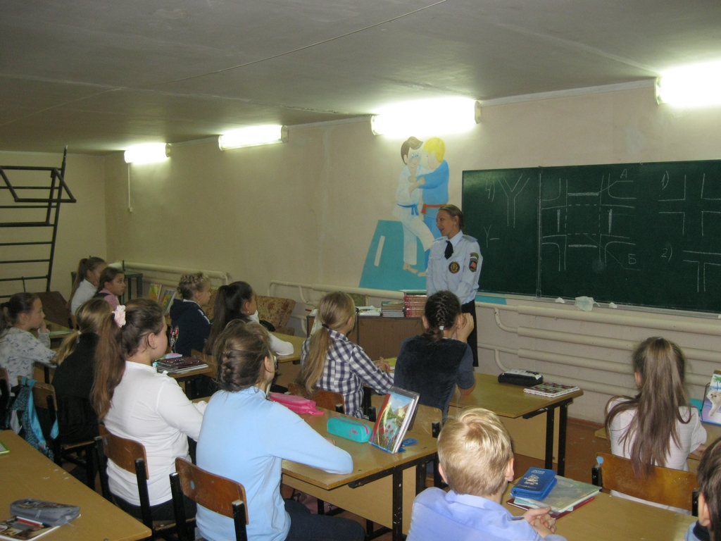 Инструктор рассказала ребятам о чрезвычайных ситуациях природного и техногенного характера, о правилах безопасного поведения в быту и в школе.