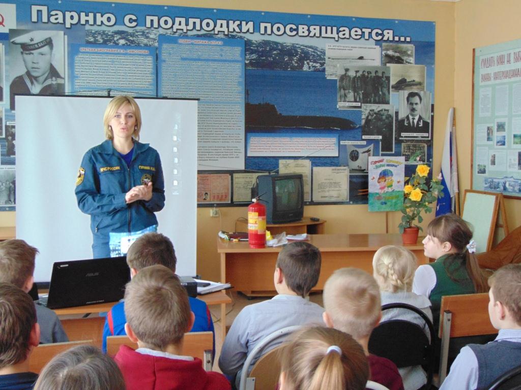 Сначала гости служб безопасности побеседовали со средним звеном школьников-3-4 классы, после чего повторили азы безопасности для детей постарше, а именно-6-7 классы.