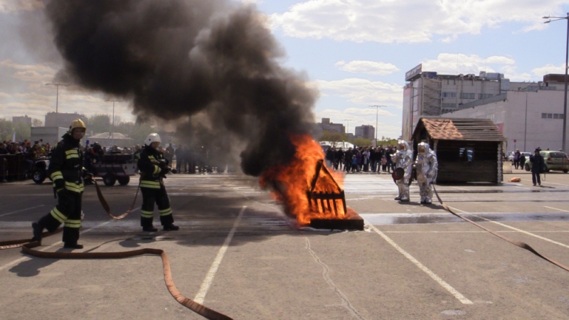 Программа праздника была насыщенной: сначала был продемонстрирован весь алгоритм действий при ликвидации последствий ДТП и спасении пострадавшего. Далее зрители увидели различные способы спасения людей с высотных зданий: с помощью автолестниц, с помощью «куба жизни», с помощью пожарного спасательного рукава и с помощью канатно-спусковых устройств. Программа продолжилась демонстрацией ликвидации условного пожара различными способами тушения. Пожалуй, самой зрелищной частью праздника стала очень реалистичная постановка – тушение горящего дома и спасение человека. Символичный триумф пожарных в победе над огнём был закреплён впечатляющим водным шоу. Особенно зрителям понравились разноцветные струи из лафетных стволов пожарных машин в виде нашего триколора.