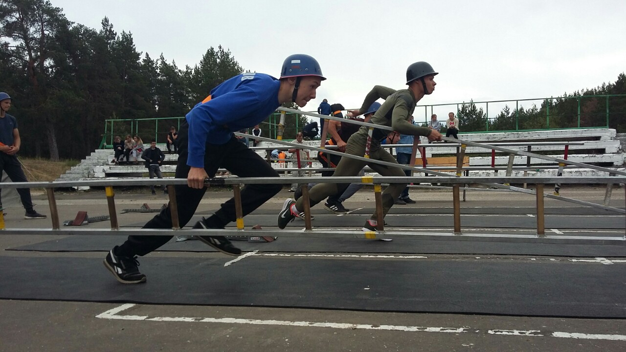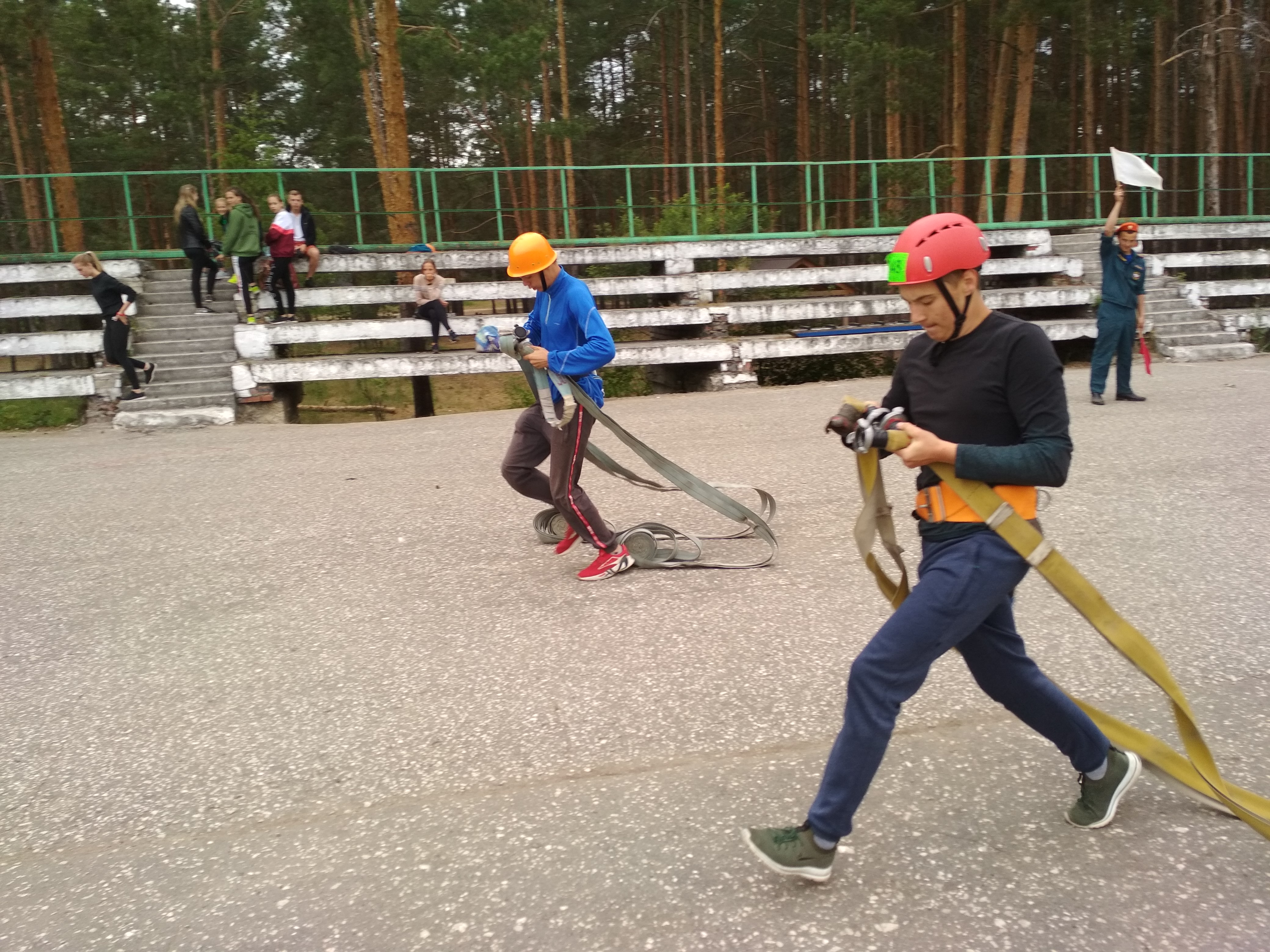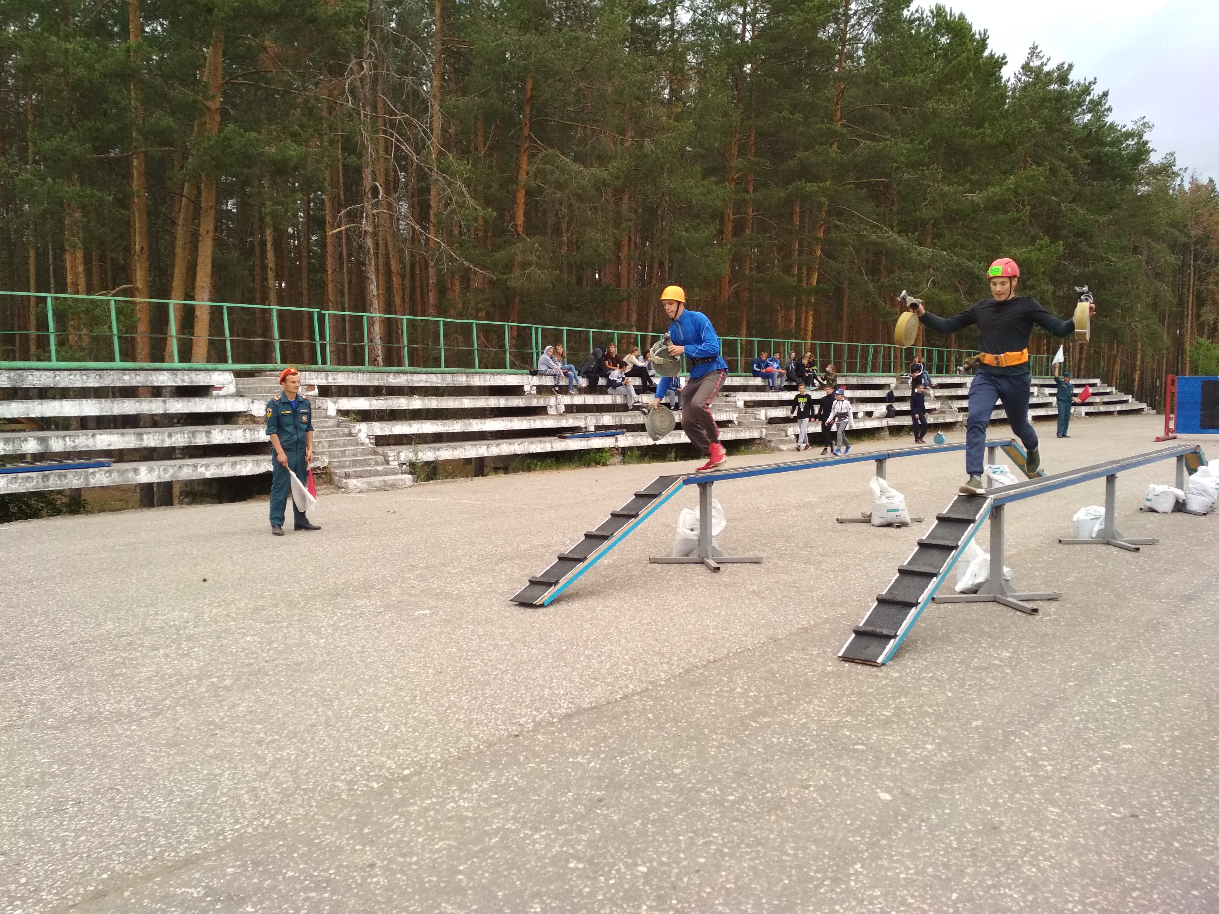 Команды соревновались в 2-х видах пожарно-спасательного спорта: прохождение стометровой полосы с препятствиями, подъём по штурмовой лестнице в окна 1-го и 2-го этажей учебной башни.