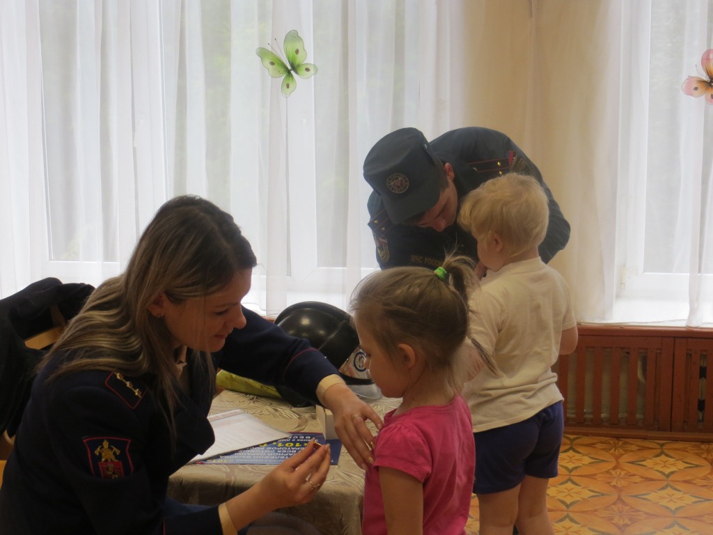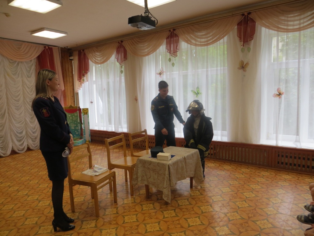 С детьми среднего и старшего дошкольного возраста были проведены обучающие занятия по пожарной безопасности. Для формирования позитивного впечатления у детей о правилах пожарной безопасности гости постарались максимально разнообразить учебный материал, используя игровые приемы, загадки и красочные плакаты. Инспектор МЧС рассказал детям о правилах пожарной безопасности дома и на улице. Так же, рассказал о нелегкой работе пожарного. Помощник председателя ВДПО провела с детьми увлекательную викторину «Огонь – друг, огонь – враг!».