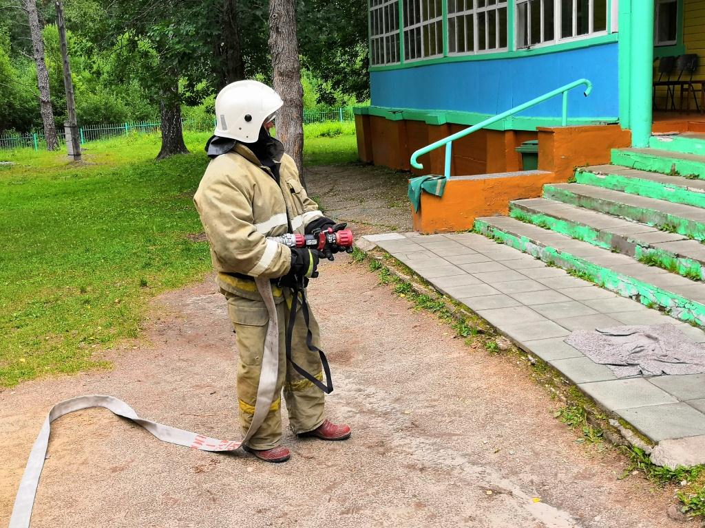 В начале каждой смены в детском оздоровительном лагере «Хрусталёк», расположенном близ деревни Новоопокино Гусь-Хрустального района проводятся практические тренировки по отработке действий по эвакуации, тушении условного возгорания и противопожарный инструктаж.
