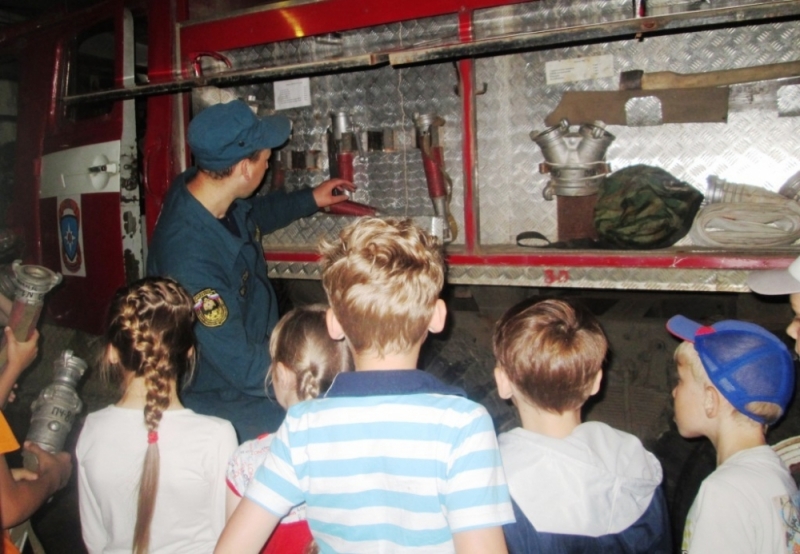 В рамках мероприятий Года пожарной охраны сотрудники Юрьев-Польского пожарно-спасательного гарнизона всё чаще открывают двери своей пожарной части для всех желающих. В разгар летних каникул в гости к огнеборцам приехали дети из школьного лагеря Опольевской средней общеобразовательной школы. Встретил ребят пожарный 4-го караула Сергей Евгеньевич Шкалябин. Огнеборец познакомил детей с тонкостями пожарного дела, а также напомнил правила пожарной безопасности и правила поведения на воде. Предупредил мальчишек и девчонок о том, что на воде нужно вести себя максимально осторожно, всегда быть под присмотром взрослых.