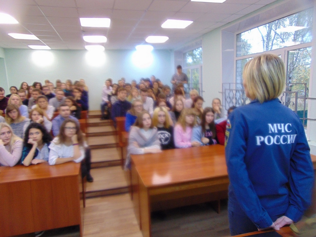 Месячник ГО: МЧС и ВДПО провели урок ОБЖ в Гусевском стекольном колледже.