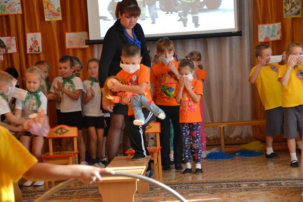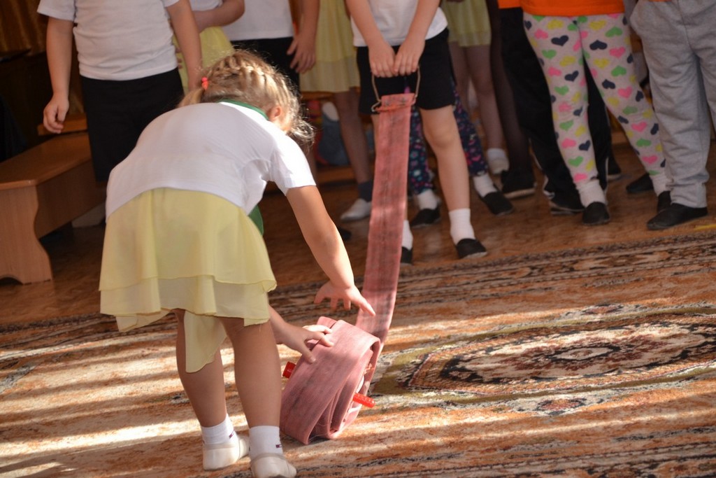 Команды детских садов, с азартом втягиваясь в круговорот соревнований, демонстрировали представления своих команд, участвовали в блиц-опросе «Огонь – друг» и в конкурсе плакатов «Огонь – враг». Дети соревновались в эстафетах по тушению пожара и в спасении пострадавших, а также состязались в конкурсе «Вызов пожарных по телефону», в знании пословиц об огне, спичках, и искре. На картинках лабиринтов – пожарным машинам находили ближайшие пути к месту вызова. Капитаны команд показывали своё умение и смекалку в конкурсе «Выбери картинки для тушения пожара». Ребятам раздавали тематические картинки, и капитанам необходимо было как можно быстрее и правильнее выбрать инвентарь и первичные средства пожаротушения для ликвидации огня.