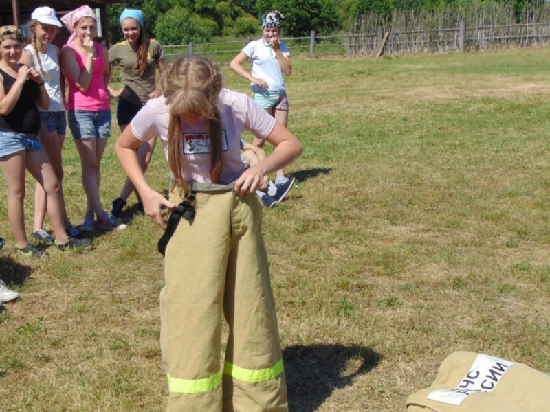 Представители огненной профессии тоже не остались в стороне.Чтобы привлечь внимание подростков к вопросам обеспечения личной и общественной безопасности, а также - для приобретения навыков безопасного поведения сотрудники МЧС и ВДПО в один из дней провели увлекательную эстафету.